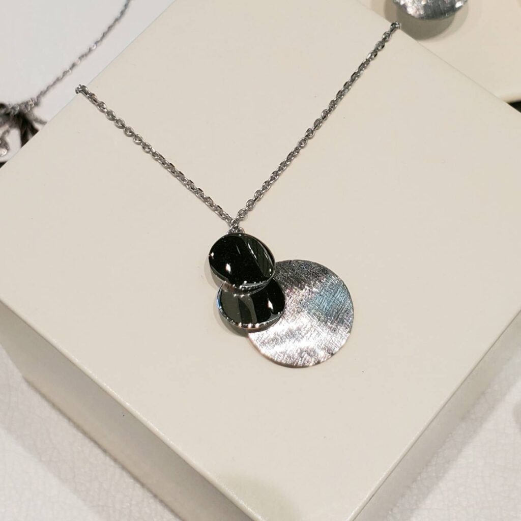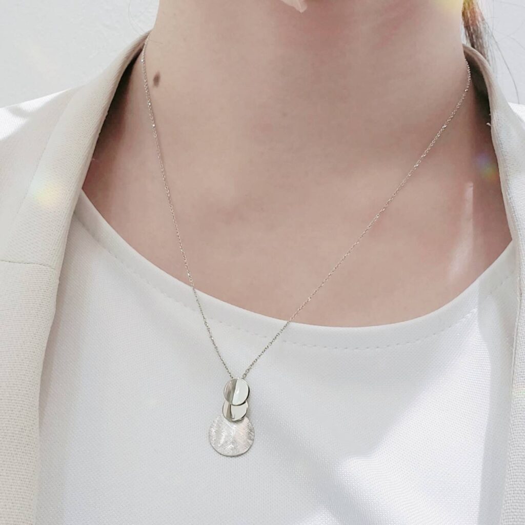 45㎝のネックレスは、ちょうど胸元あたりでキラキラ揺れてくれます♪
