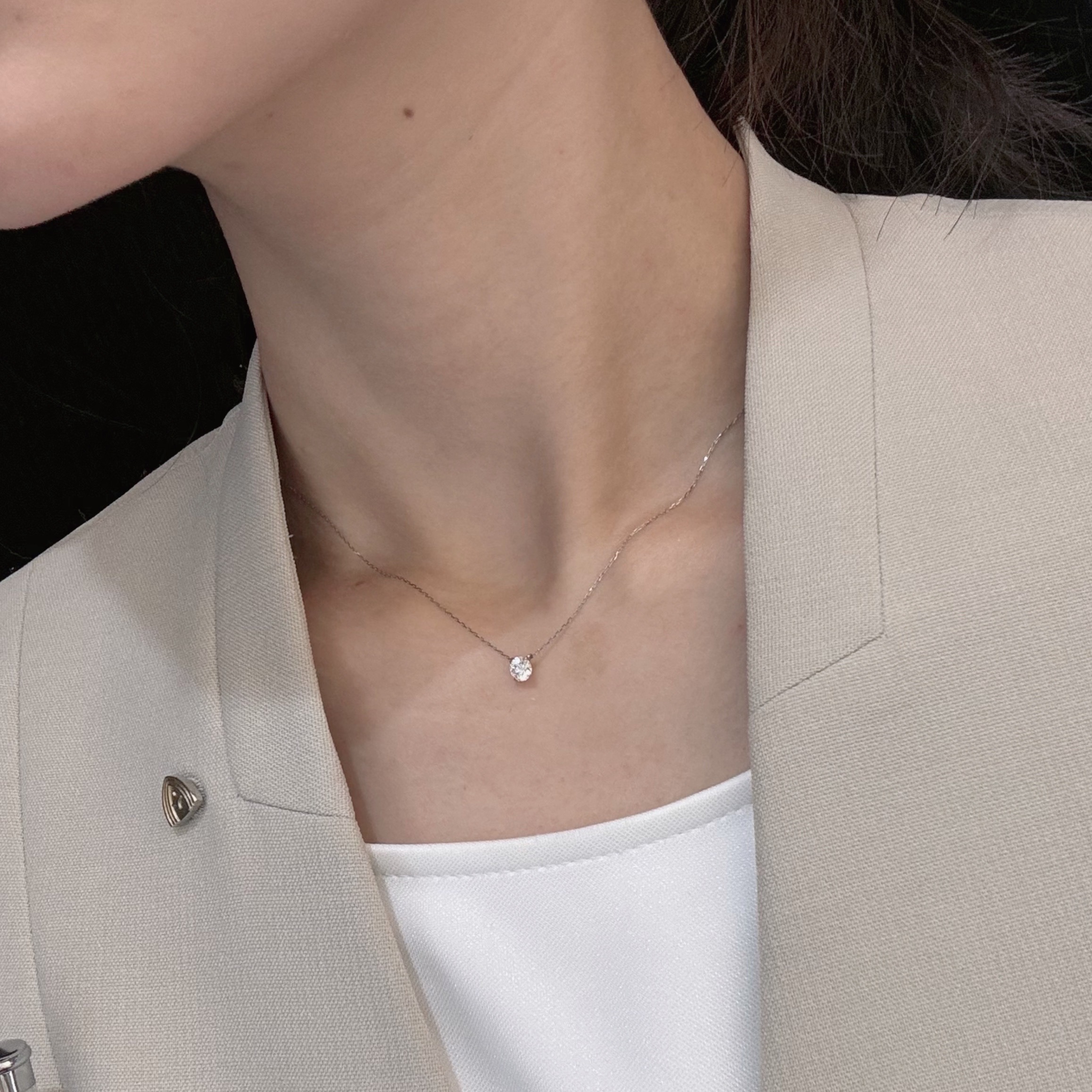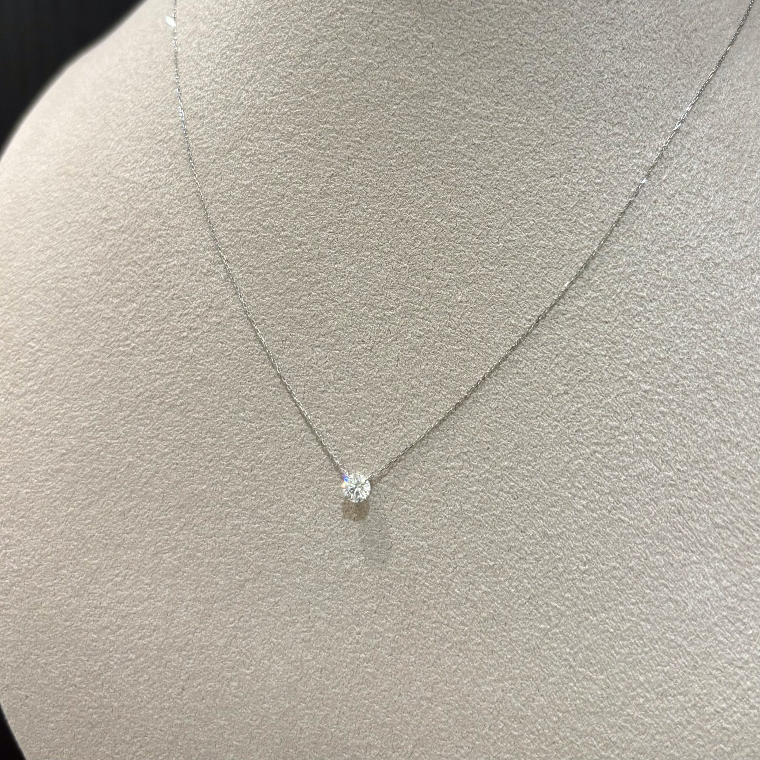 通常のネックレスよりもチェーンが細く、ダイヤモンドを支える”爪”と呼ばれる部分も小さいためダイヤモンドがより映えるデザインとなっています。