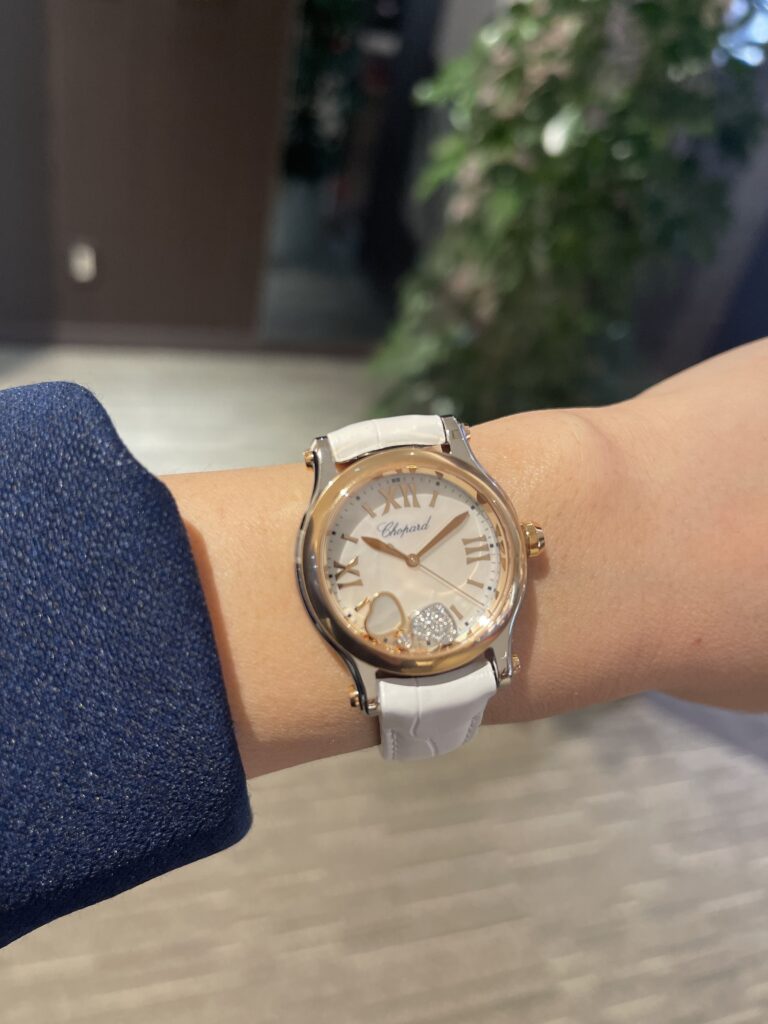 もうすぐバレンタインの季節ですね。本日はバレンタインのハートにちなんで、ショパールのハッピースポーツにハートのムービングが入ったモデルをご紹介します。