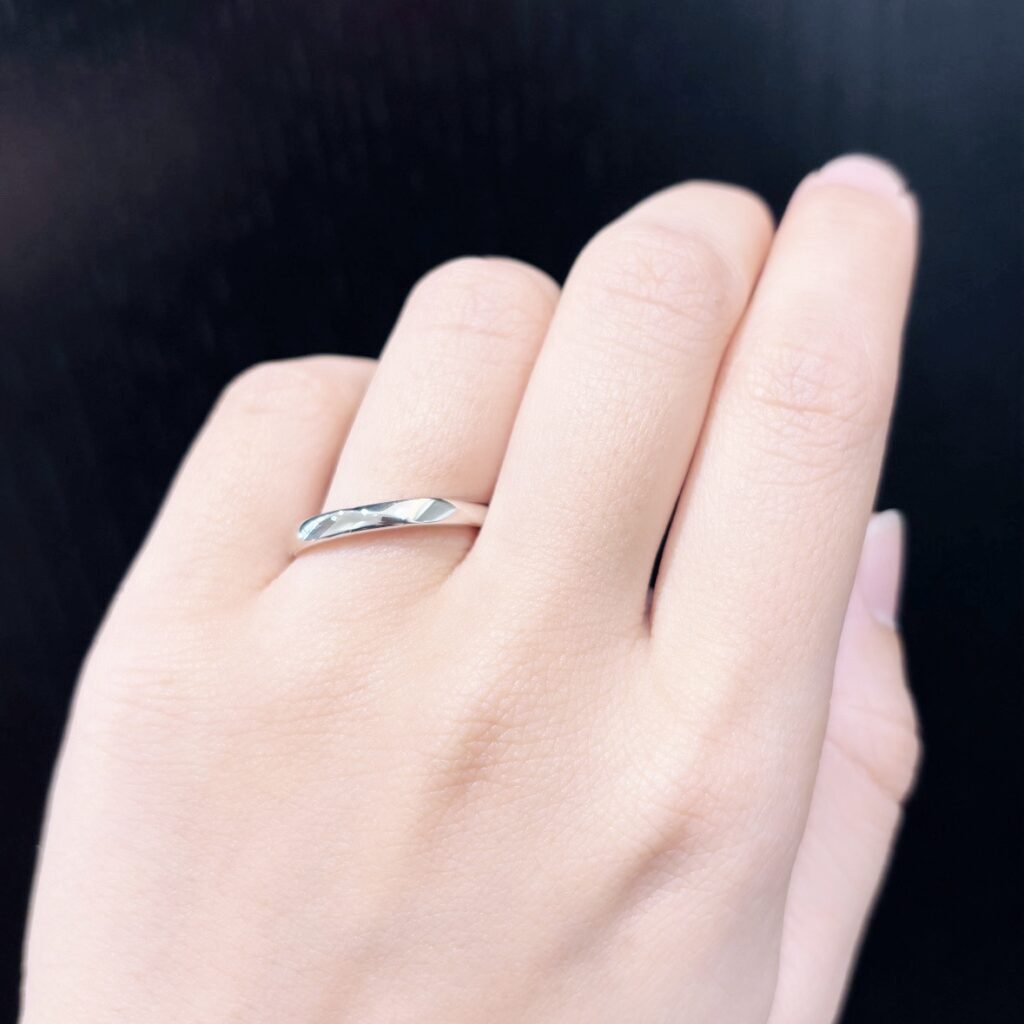 ストレートのシンプルデザインながら、表面に立体感を持たせたデザインでほど良い存在感があります。