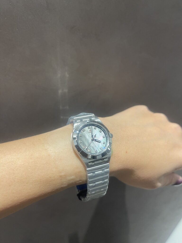 文字盤はブラックマザーオブパールで、ダイヤモンドとの相性抜群です。