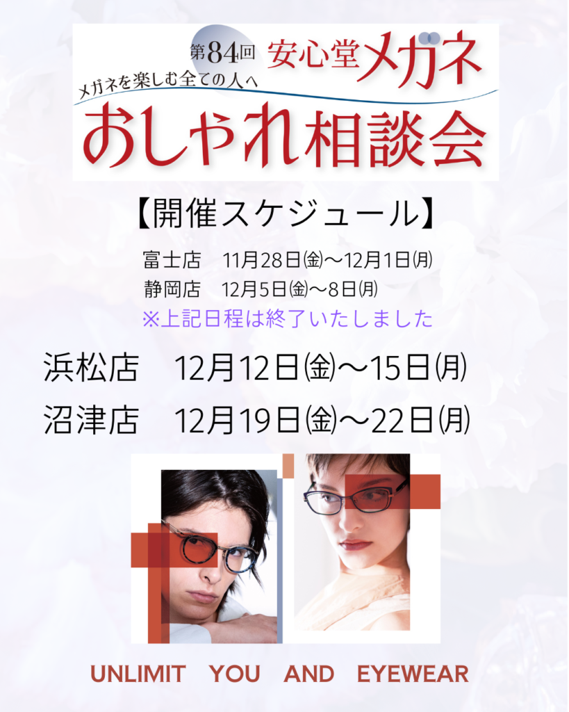 安心堂沼津店では、12/19(金)よりメガネおしゃれ相談会を開催いたします✨