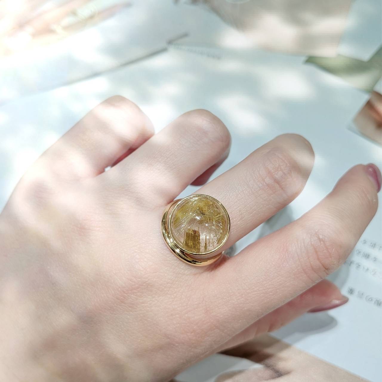 存在感がありながらも透明感があり、手元を印象的に彩るリングです。