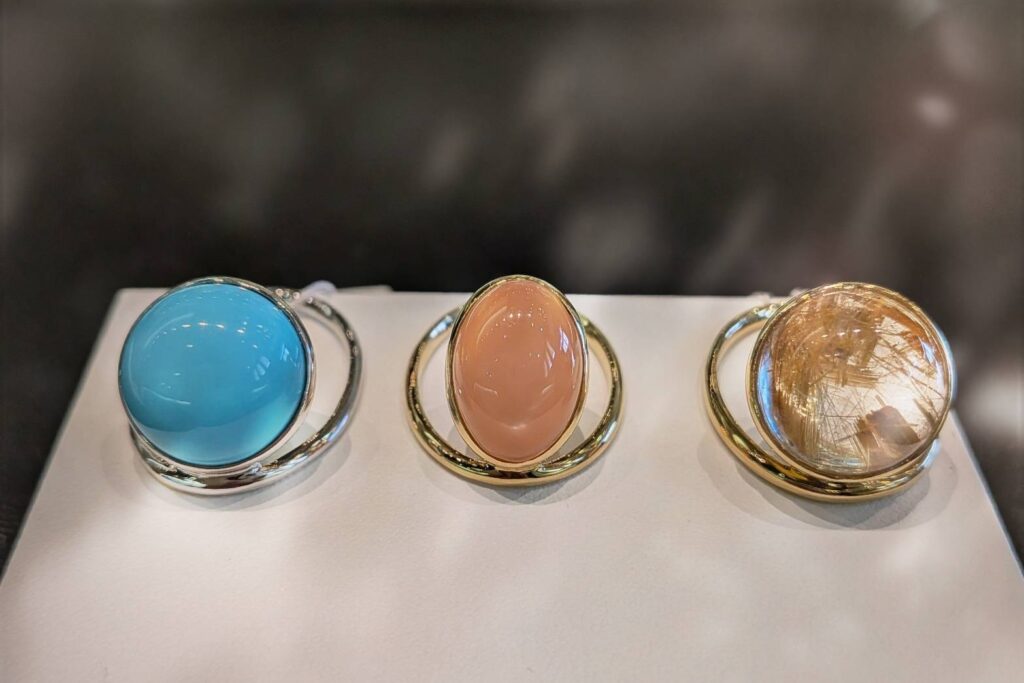 どれも存在感のある石ですが、実際に着けてみると不思議なほど指に馴染みます。