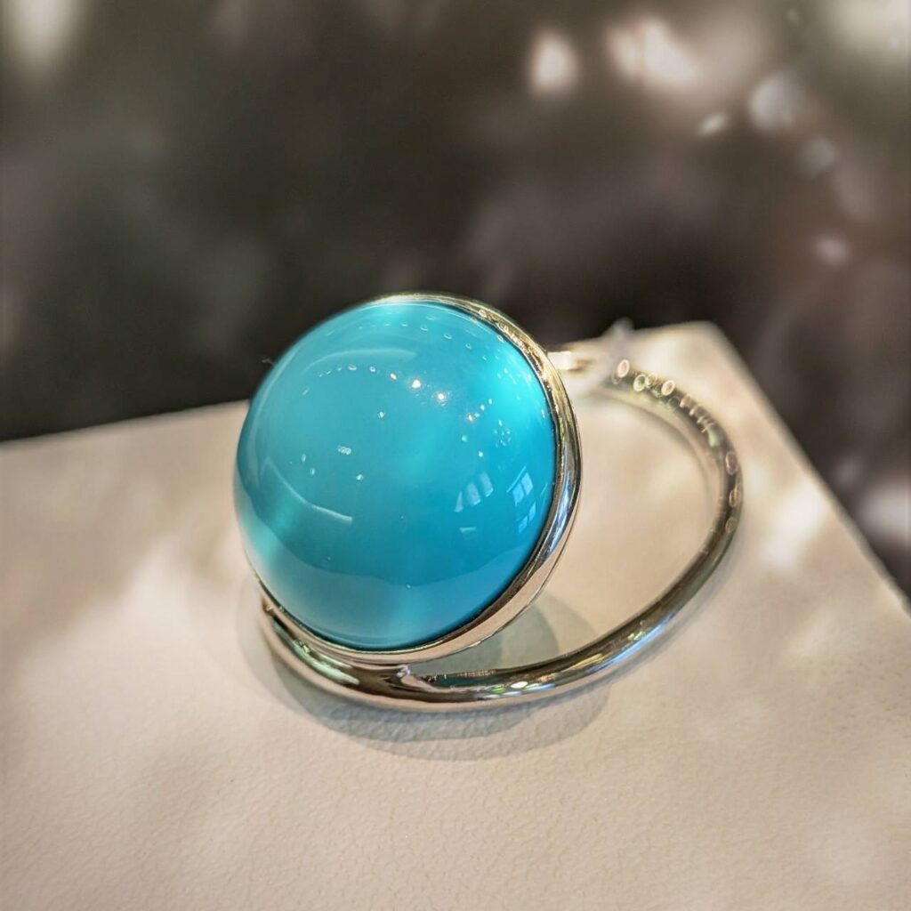 光の角度によって表情が変わり、角度を変えるたびに新しい輝きを見せてくれます。