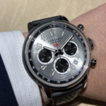 こちらの新作はサンレイ仕上げのダイヤルとスモーキーなアクセントが特徴です。