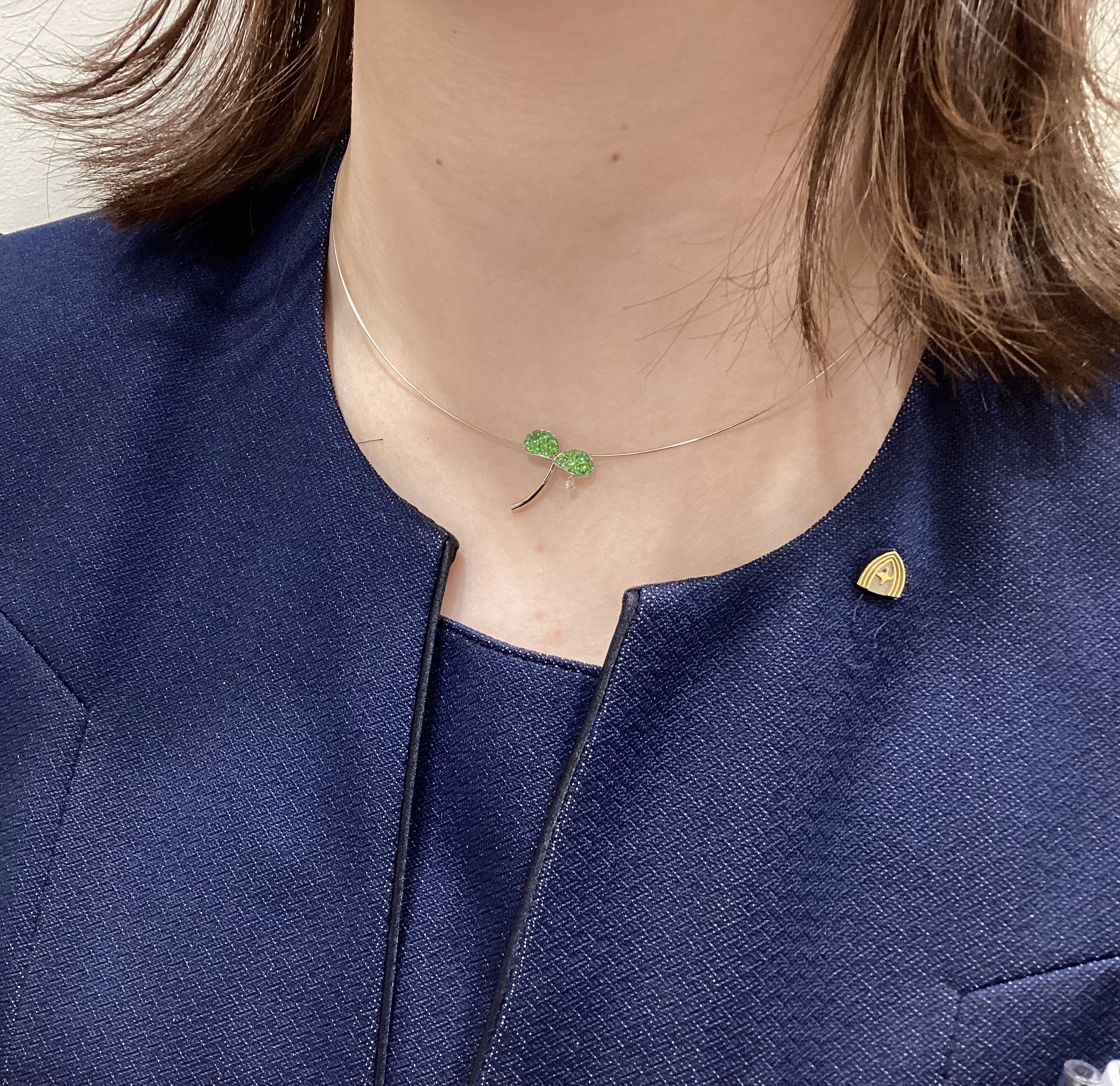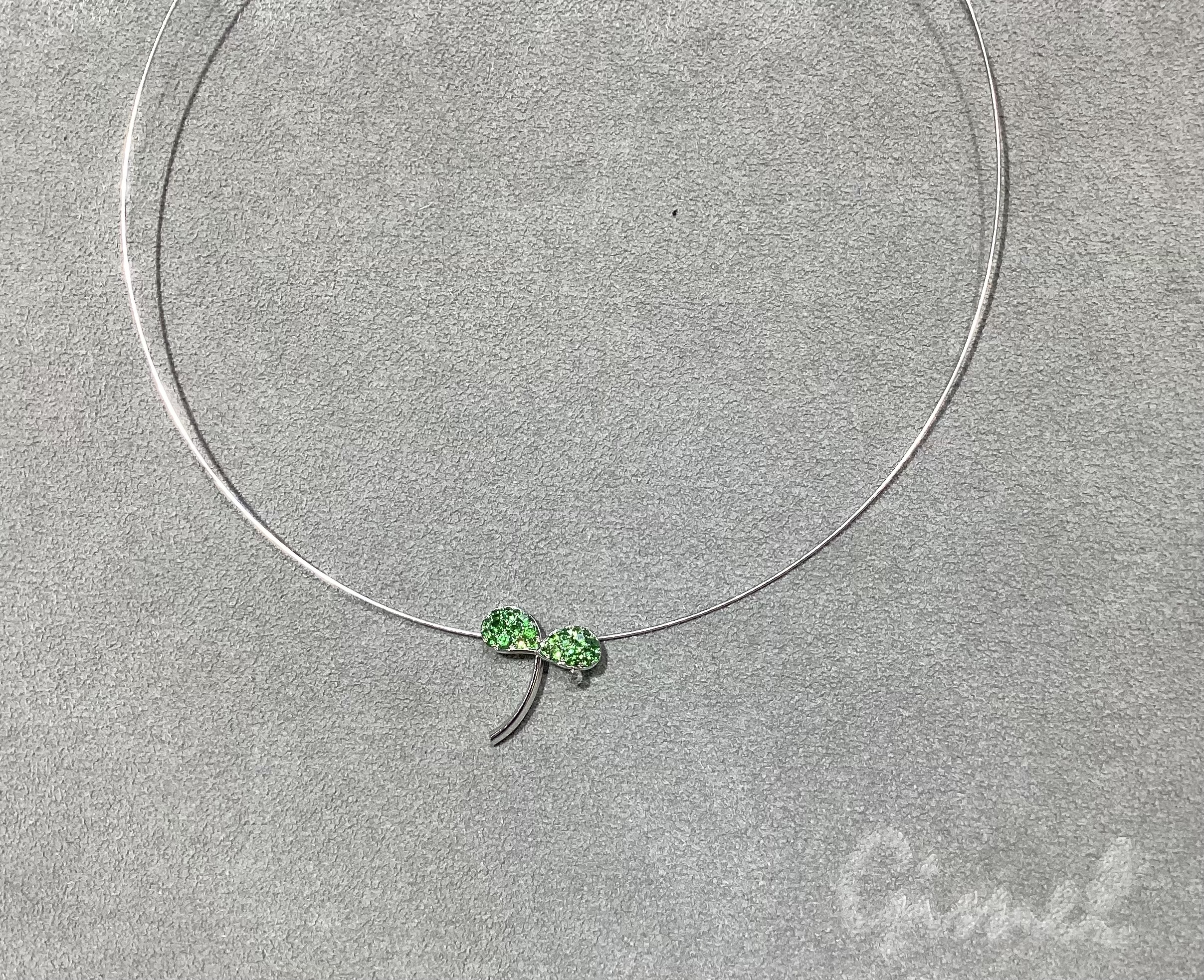 ダイヤモンドのように美しく輝くガーネット、という意味を持つデマントイドガーネットのグリーンがとても美しいペンダントです。