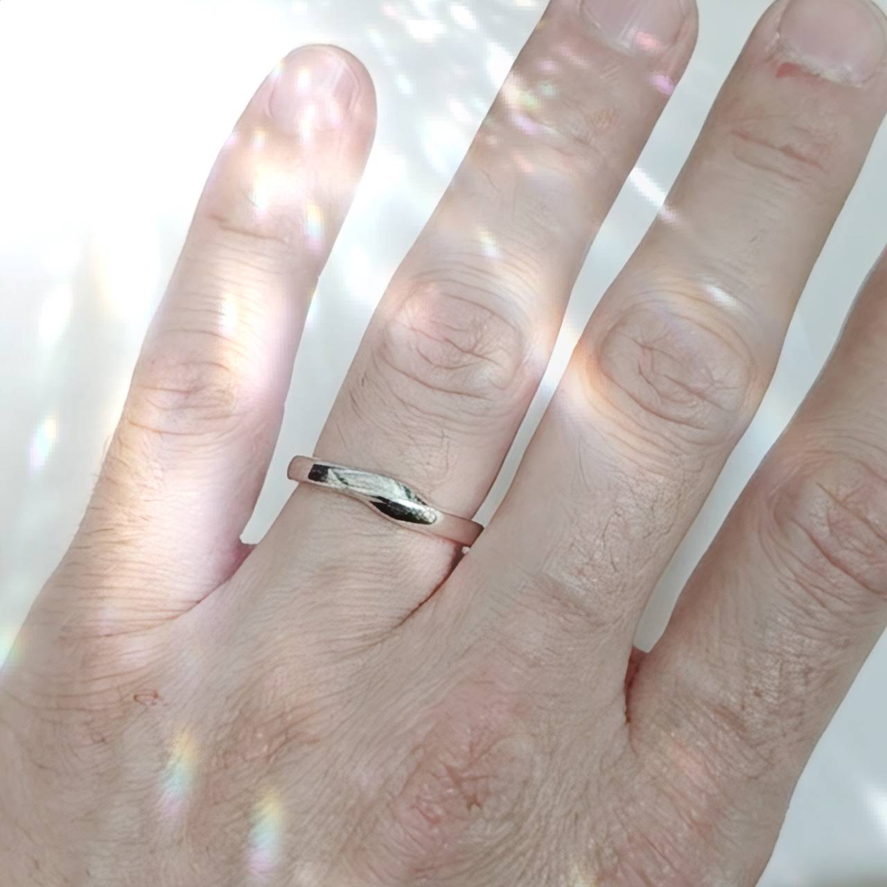 中央のなだらかなカーブが指元に自然に馴染み、シンプルながらも存在感のあるデザインに仕上がっています。