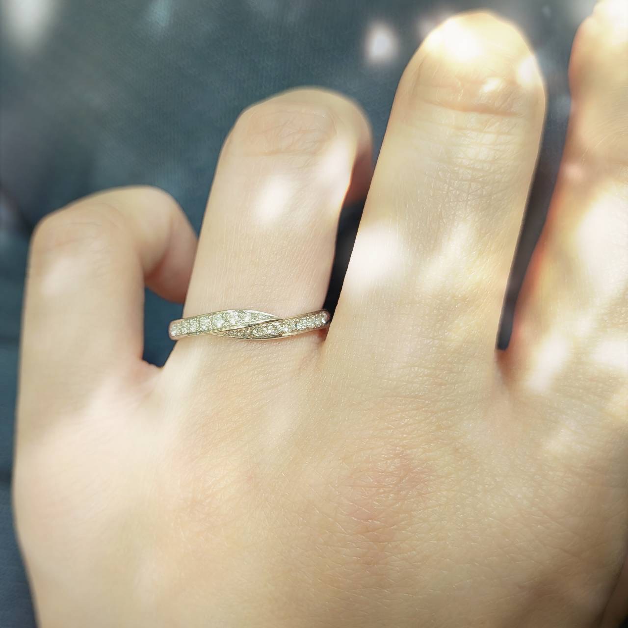 シンプルでありながら、さりげなく個性を感じられる仕上がりで、長く身に着けるマリッジリングとしてちょうどいいバランスです。