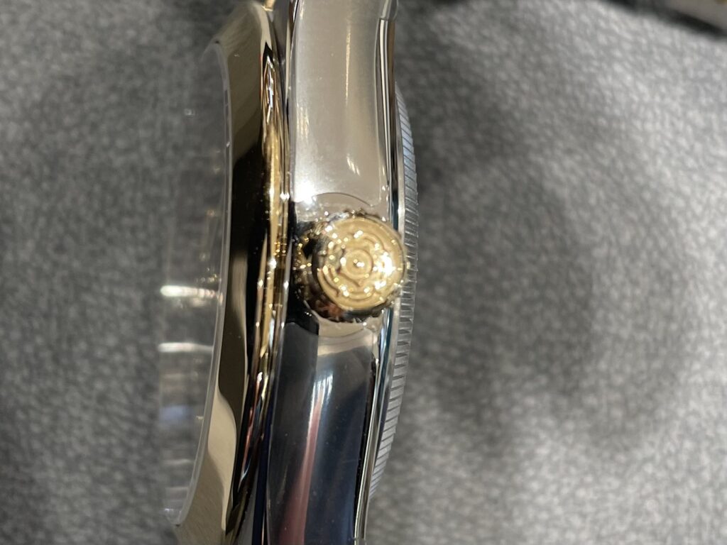 イエローゴールドのベゼルにコンビの5列ブレスレットは高級感を感じさせます。