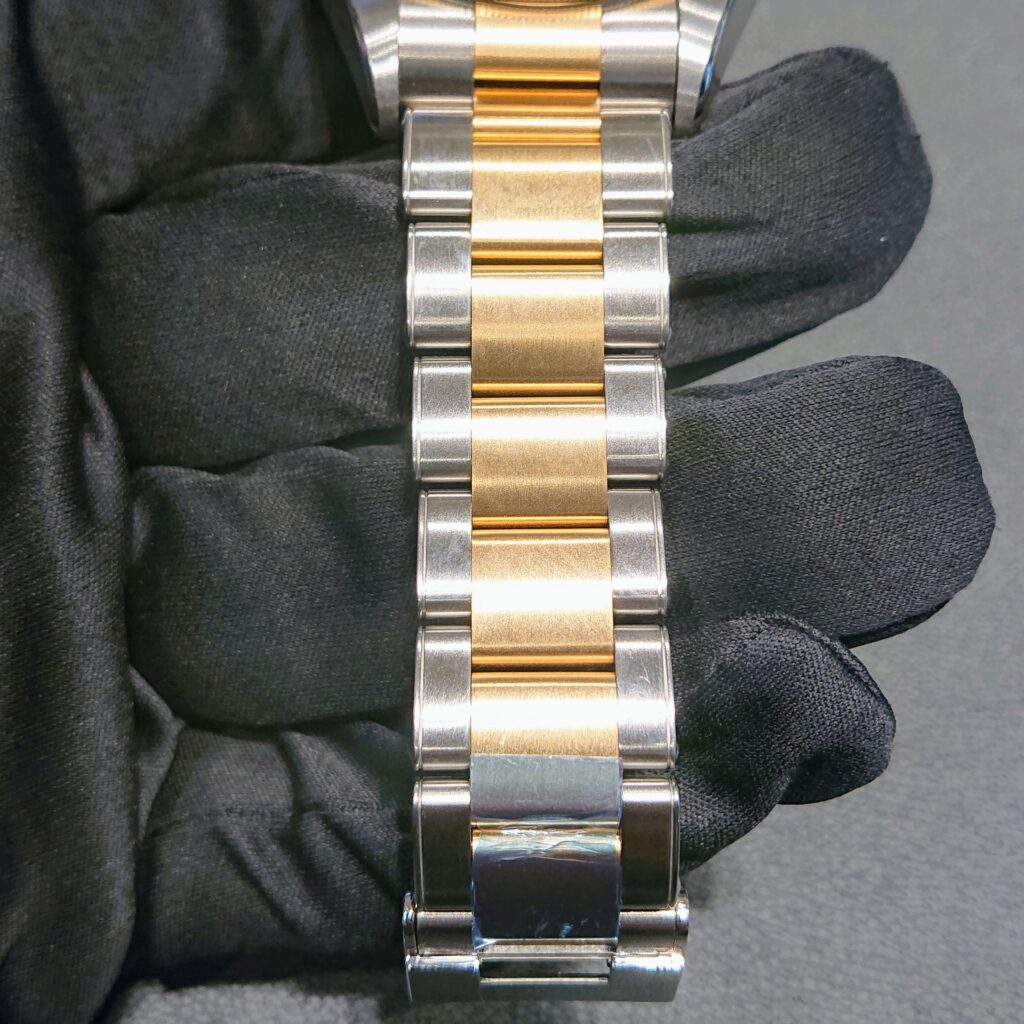 シャンパンゴールドの文字盤に、ステンレススチールとイエローゴールドを使用した