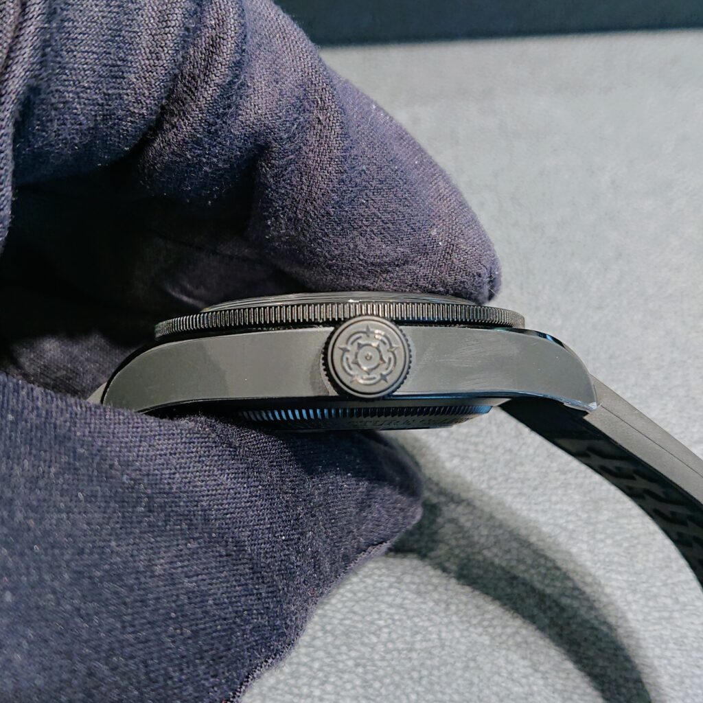 こちらのモデルにも、リューズ部分にチューダーローズが刻印されております。