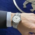 インデックスや針はイエローゴールドでブルーとの相性もバッチリです!