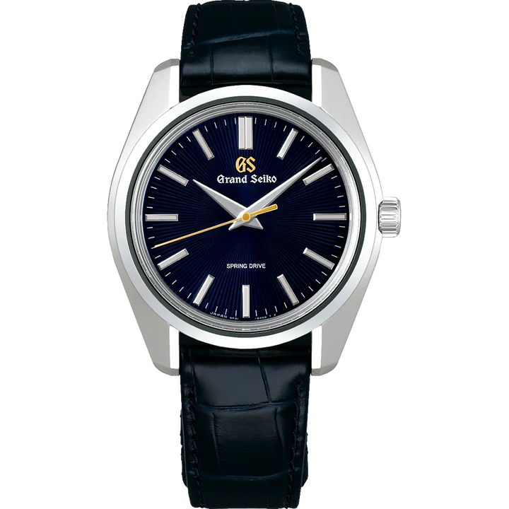 ネイビーのダイヤルにゴールドのGSロゴが