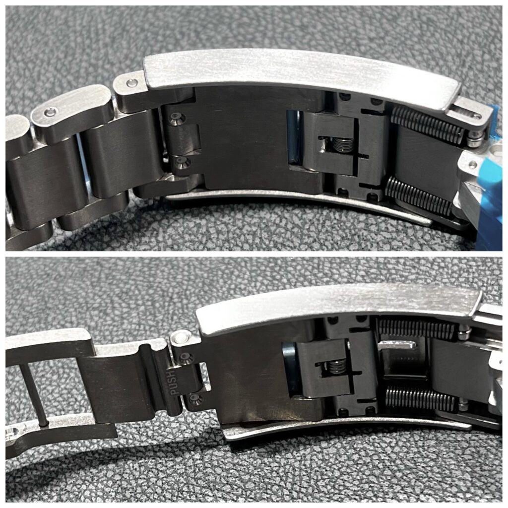 クラスプ部分は、チューダーが独自開発し特許を取得したブレスレット延長システムで