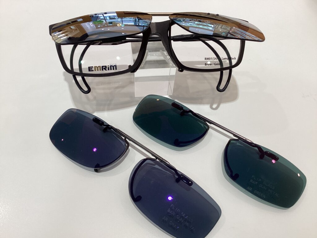 オプションで跳ね上げ式のサングラスもご用意できます。