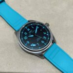 深いブルーのリューズに沿って軌跡を描くローマ数字🕗