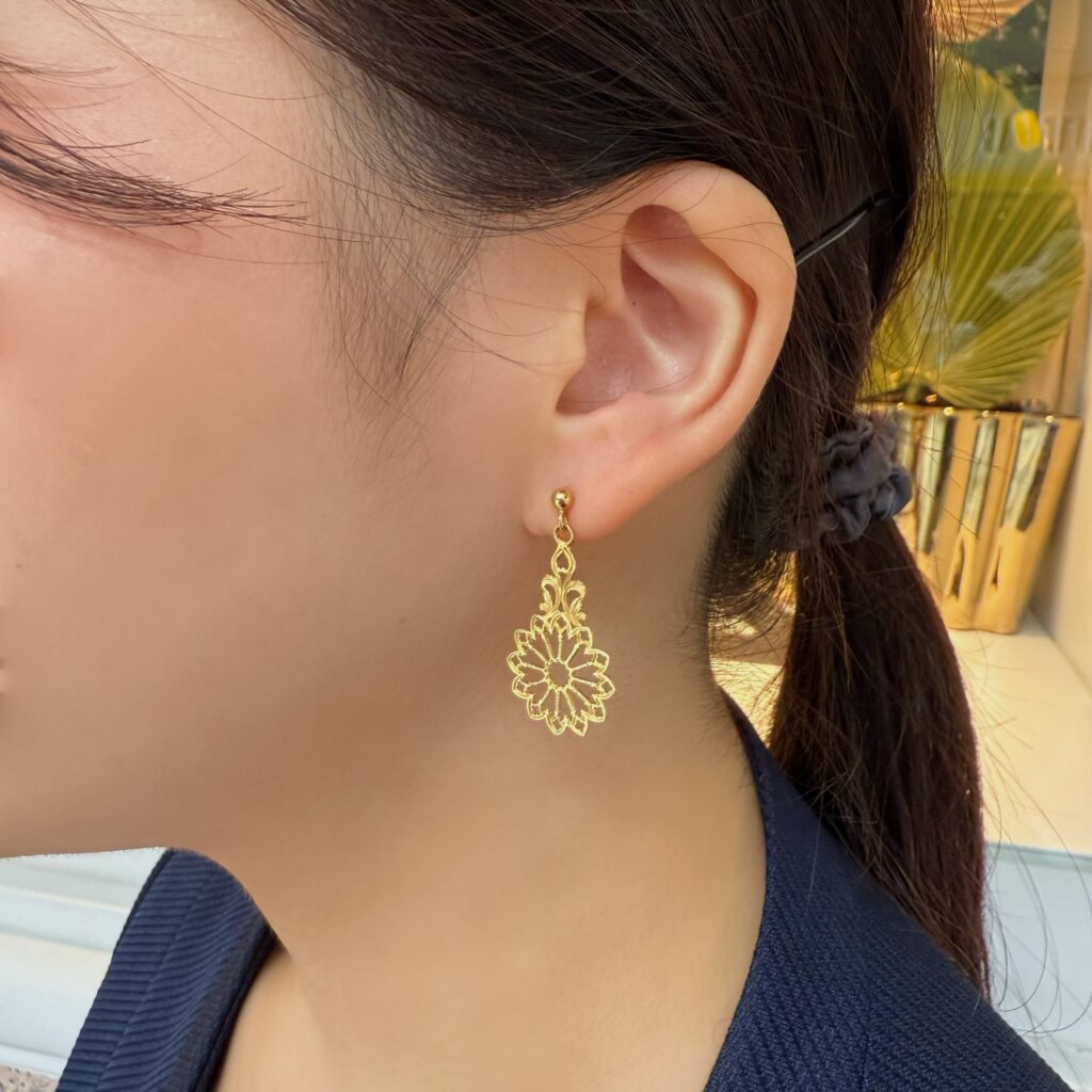 【UNOAERRE】秋のお洋服のアクセントにぴったりなゴールドピアス【安心堂静岡本店】